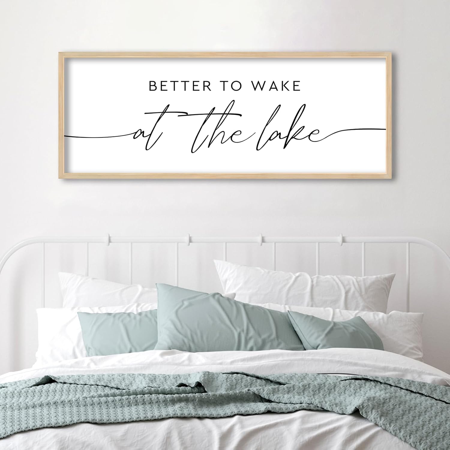 SRSZHIYUE Better To Wake At The Lake Wall Decor Above Bed Sign 32"×12" for Lake House Bedroom Over Bed Large Wood Framed Wall Hanging Art (Wood)
