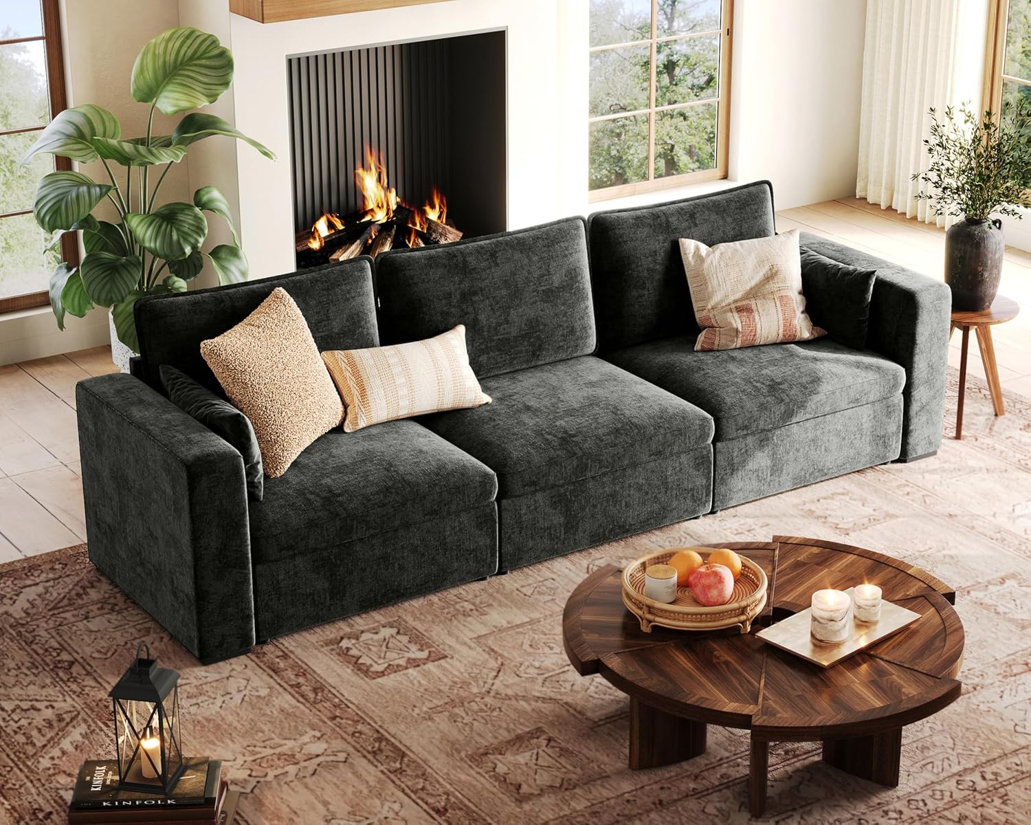 124.8'' Oversized Modular Sofa Comfy Cloud Couch with Storage, Extra Wide Sectional Sofa for Living Room, Covers Washable, 3-Seater, Chenille, Black