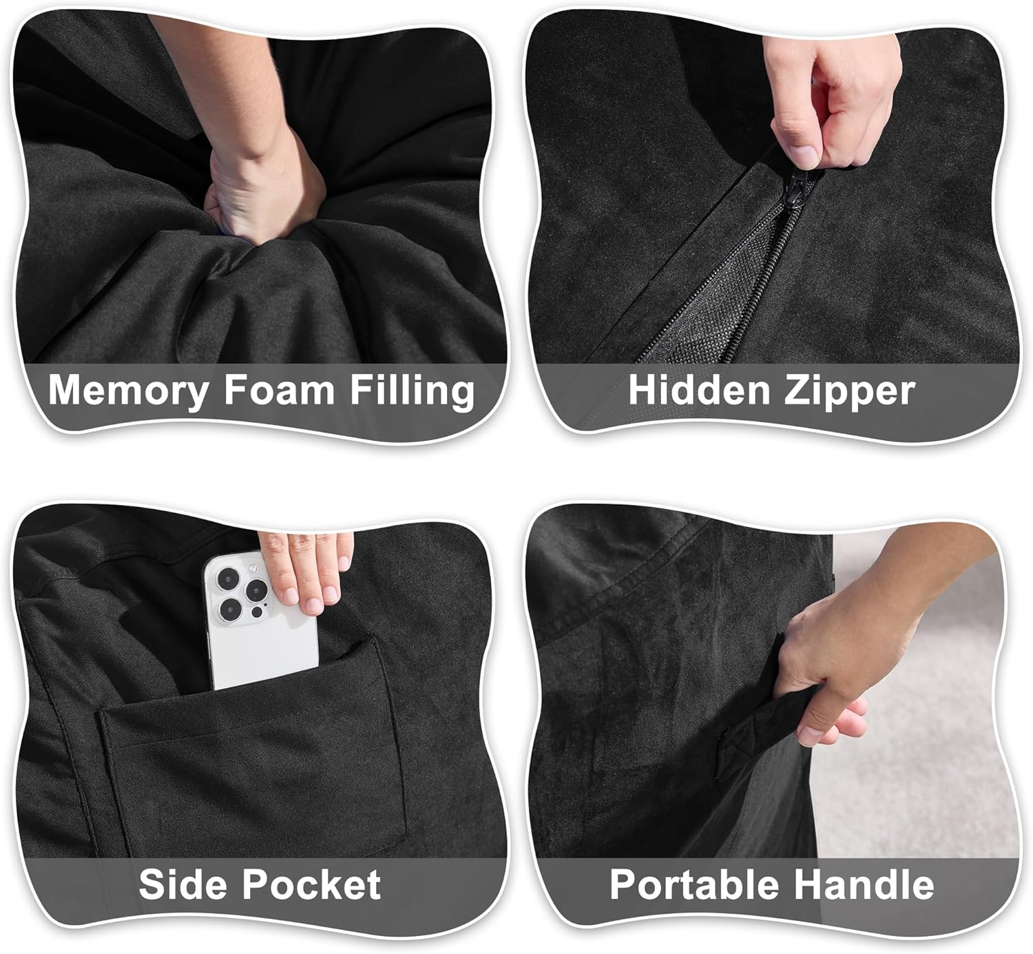 Hobestluk 6FT Bean Bag Chair Bean Bag Chairs for Adults Giant Bean Chairs with Velvet Cover, Memory Foam BeanBag Chair Fluffy BeanBag Chairs for Living Room, Bedroom- Black (70" x 70" x 15")