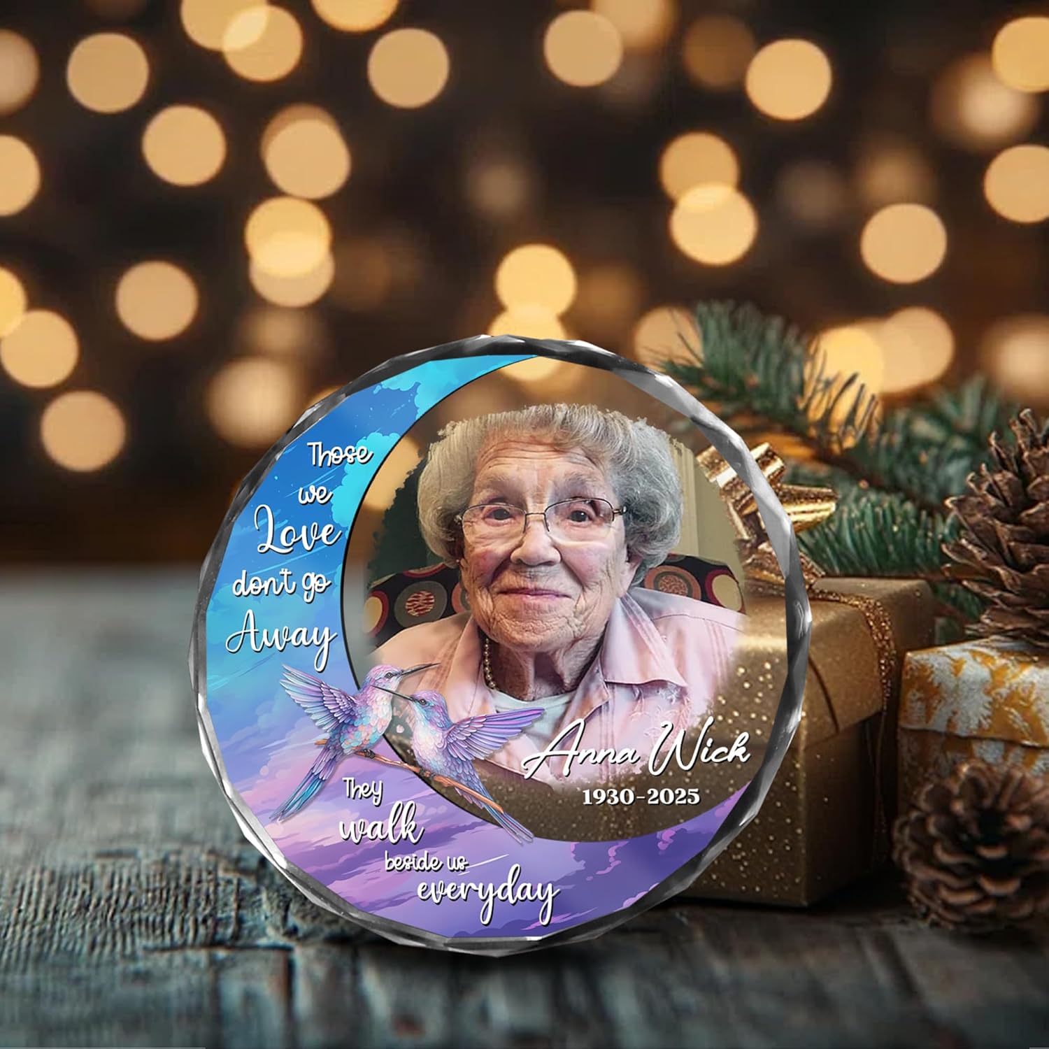 Personalized Memorial Hummingbird Glass Ornament – in Loving Memory of Anna Wick – Custom Photo, Name, Birth Year & Passing Year – “Those We Love Don’t Go Away” Memorial Keepsake