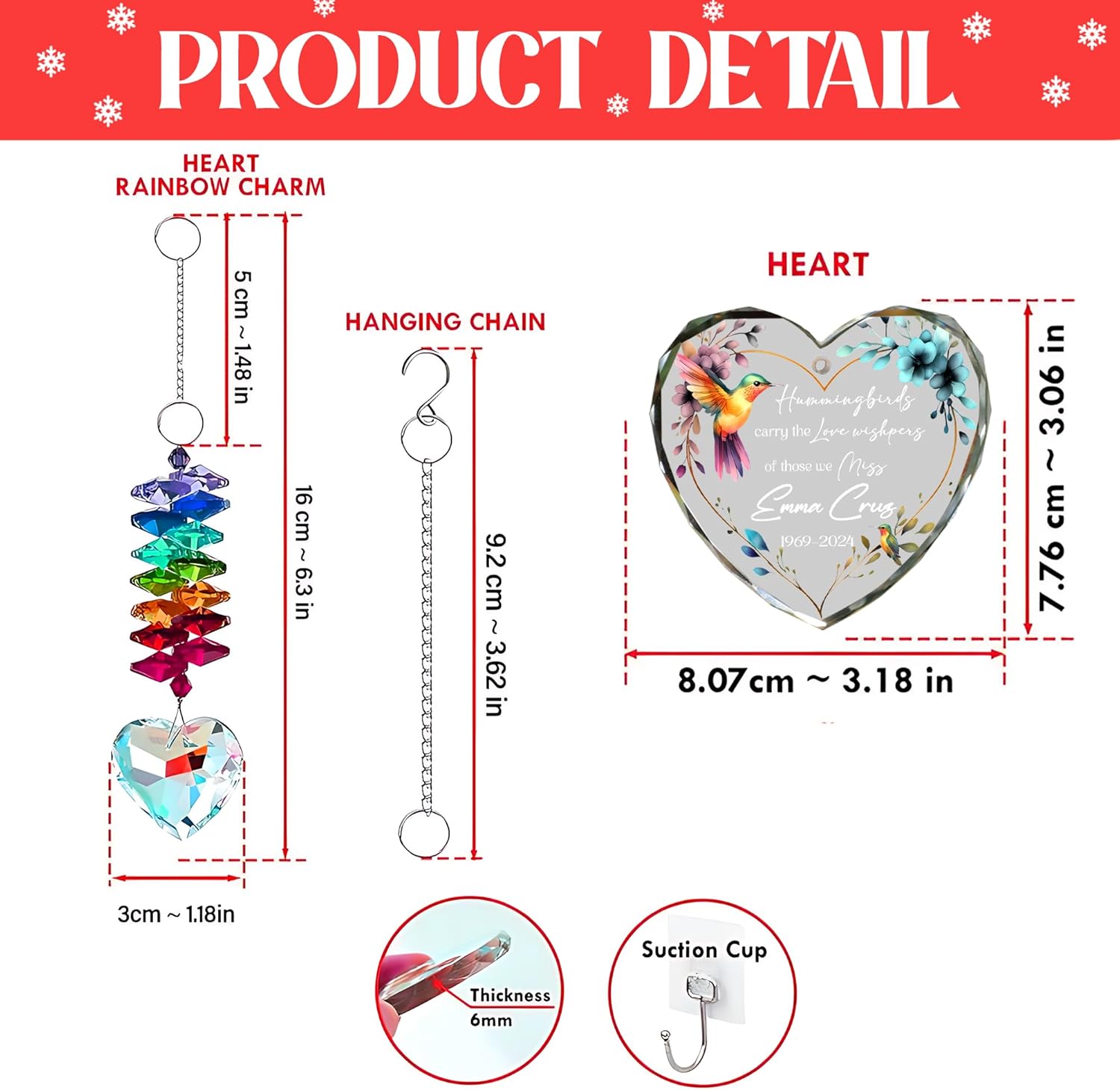 - This Personalized Memorial Hummingbird Ornament features the loving phrase, “Hummingbirds carry the love whispers of those we miss,” with a colorful hummingbird and flowers design. Customizable with your loved one’s name and the years of their life, it’s a meaningful tribute to remember and celebrate their legacy.