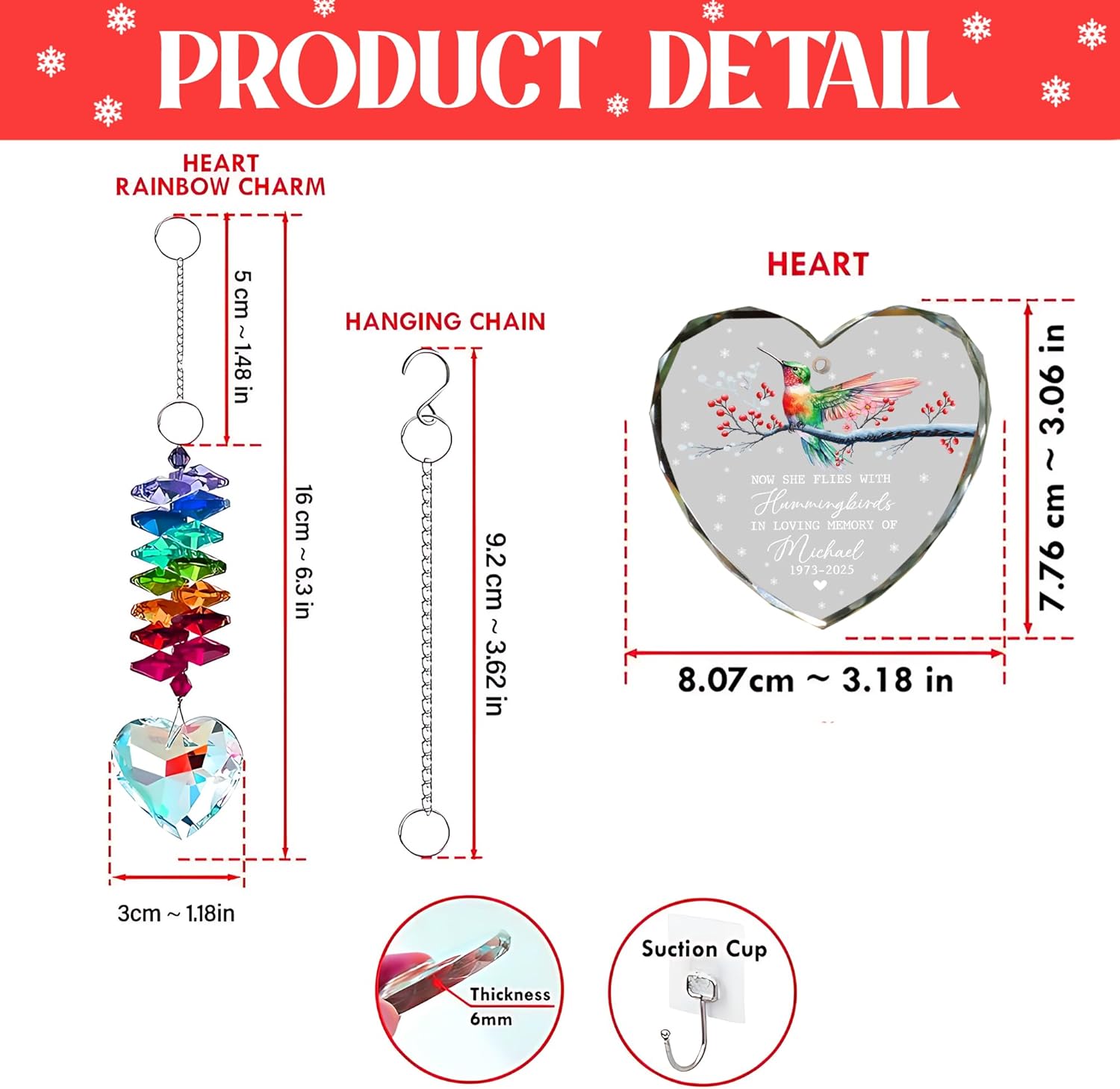 - This Memorial Hummingbird Ornament beautifully symbolizes the memory of your loved one with the touching phrase “Now She Flies with Hummingbirds.” Featuring a colorful hummingbird surrounded by delicate snowflakes, it’s a heartfelt tribute that captures the essence of life, love, and remembrance.